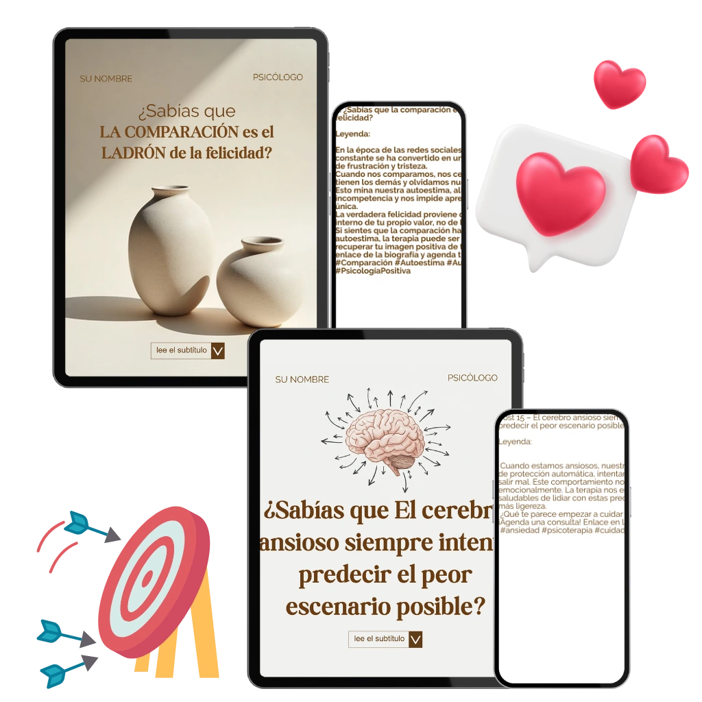 Receba DIVERSOS posts PRONTOS. Todos os posts já possuem conteúdo EXCLUSIVO para psicólogas e terapeutas + LEGENDAS PRONTAS para todos posts, com até as mesmo hashtags para atrair o público certo interessado em seus serviços!